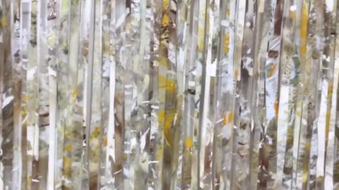 Y es el color lo que da fuerza a sus trabajos, aquello que viene desde lógicas concepto-matemáticos, que se mezclan y conviven uno al lado del otro, mezclándose, jugando en una danza interminable que se revuelve en lo que es De-velado, que presenta desde el escenario hasta lo que hay tras bambalinas. Es por eso que su trabajo evoluciona desde la misma experimentación para minimizarse y cambiar el formato de la pintura sobre el lienzo a tan solo retazos del mismo, a tiras que se superponen sobre la luz para mostrar el volumen, los cambios y la multiplicidad que le entrega la transparencia.